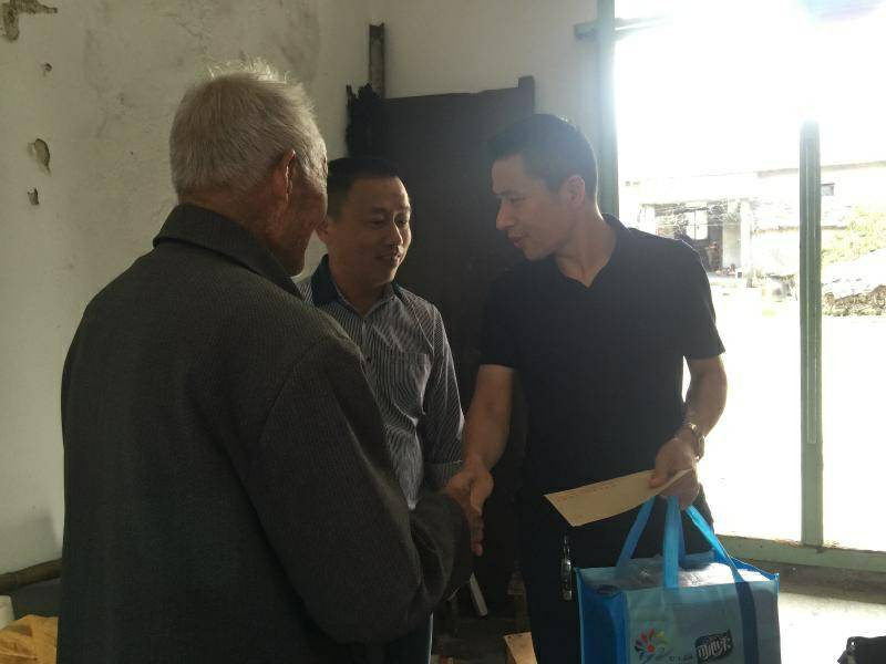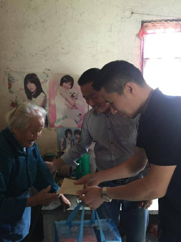 重阳节浙江杭州彦霖短视频创作工作室有限公司纸业陈少林董事长、生产部经理邵忠华等企业高层前往结对村看望困难老人