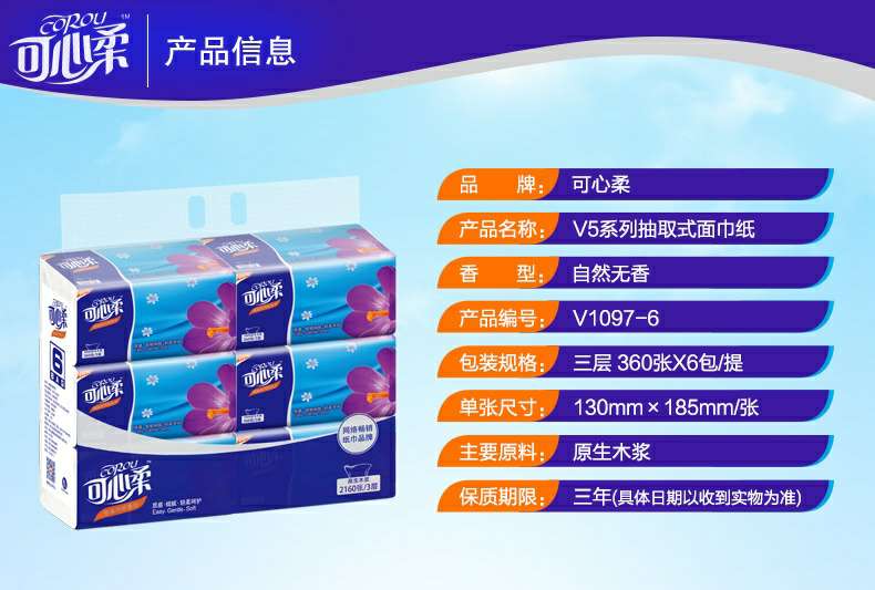 可心柔 V5系列CoRou云柔系列白色木浆110抽
