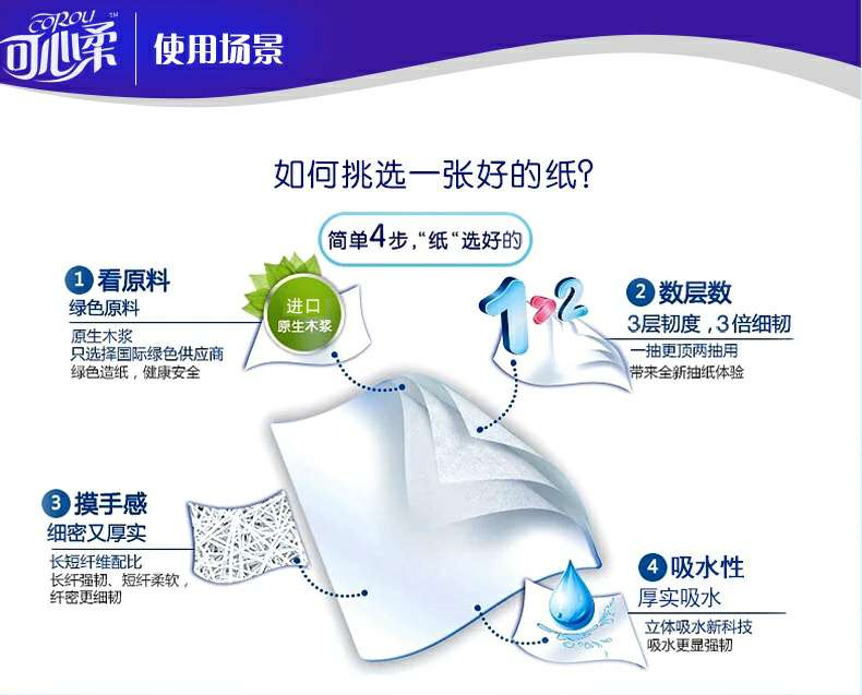 可心柔 V8系列CoRou云柔系列白色木浆40抽
